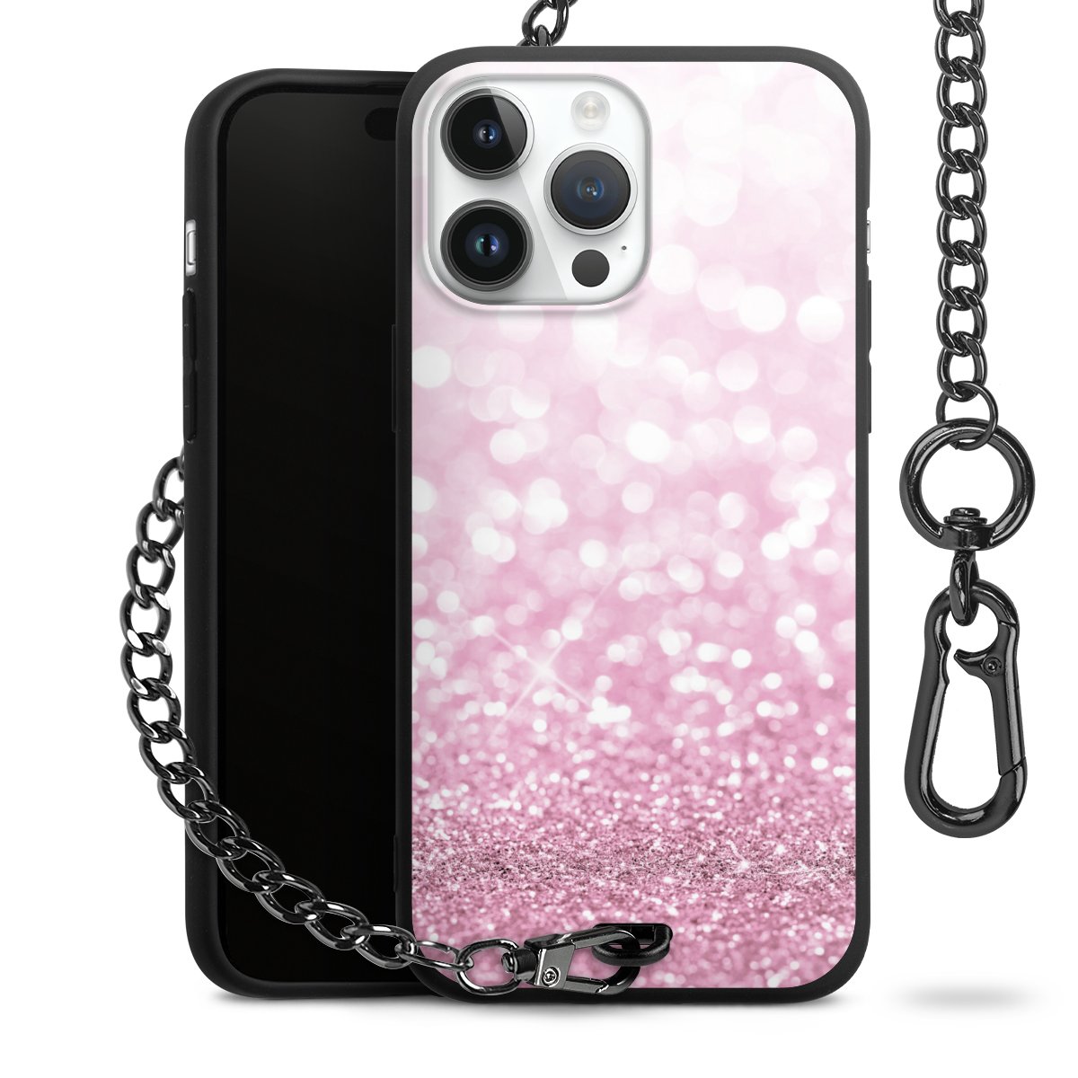 • Mattschwarze Handyhülle mit Metallkette