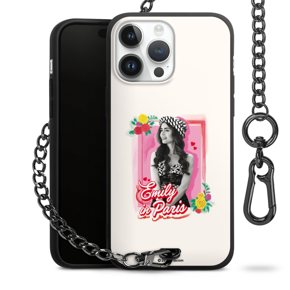 Die Handyhülle verfügt über eine mittig am unteren Rand platzierte Öse, an der die Metallkette stabil befestigt ist. Bestelle die Hülle einfach für Dein Smartphone-Modell, dann passt sie wie angegossen und Du brauchst sie bloß einmal anzudrücken. Handy in die Tasche, Karabiner an den Hosenbund – schon kann die Party starten.