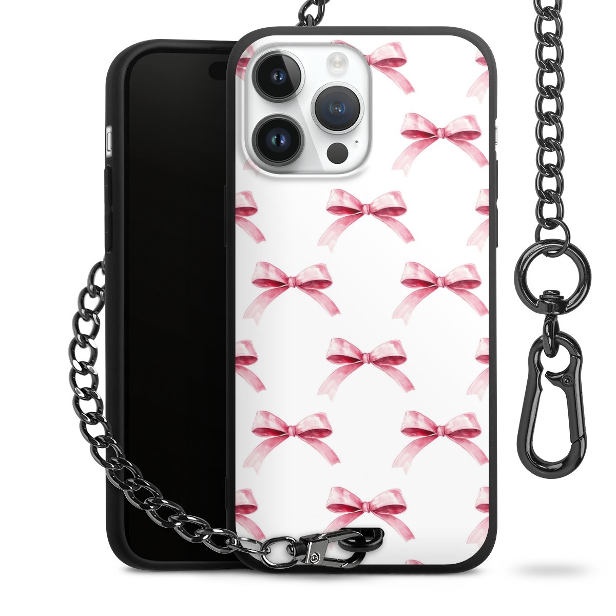 • Mattschwarze Handyhülle mit Metallkette