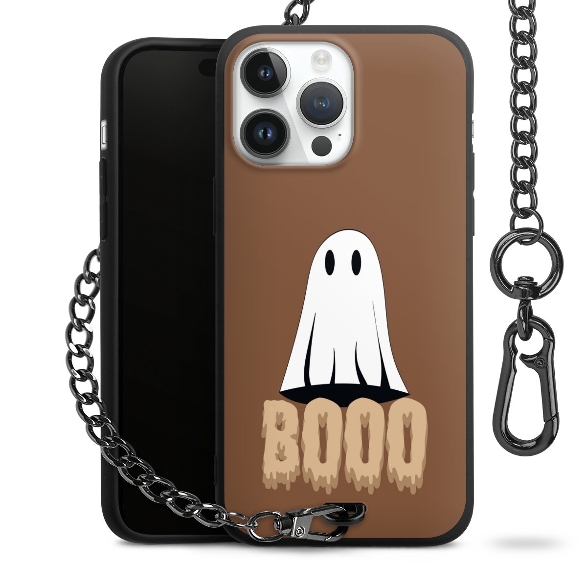 - Mattschwarze Handyhülle mit Metallkette