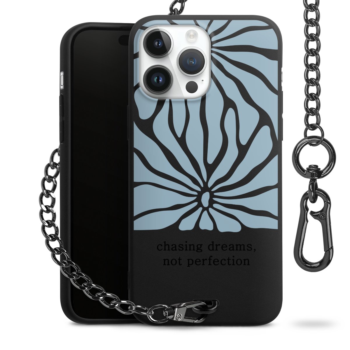• Mattschwarze Handyhülle mit Metallkette