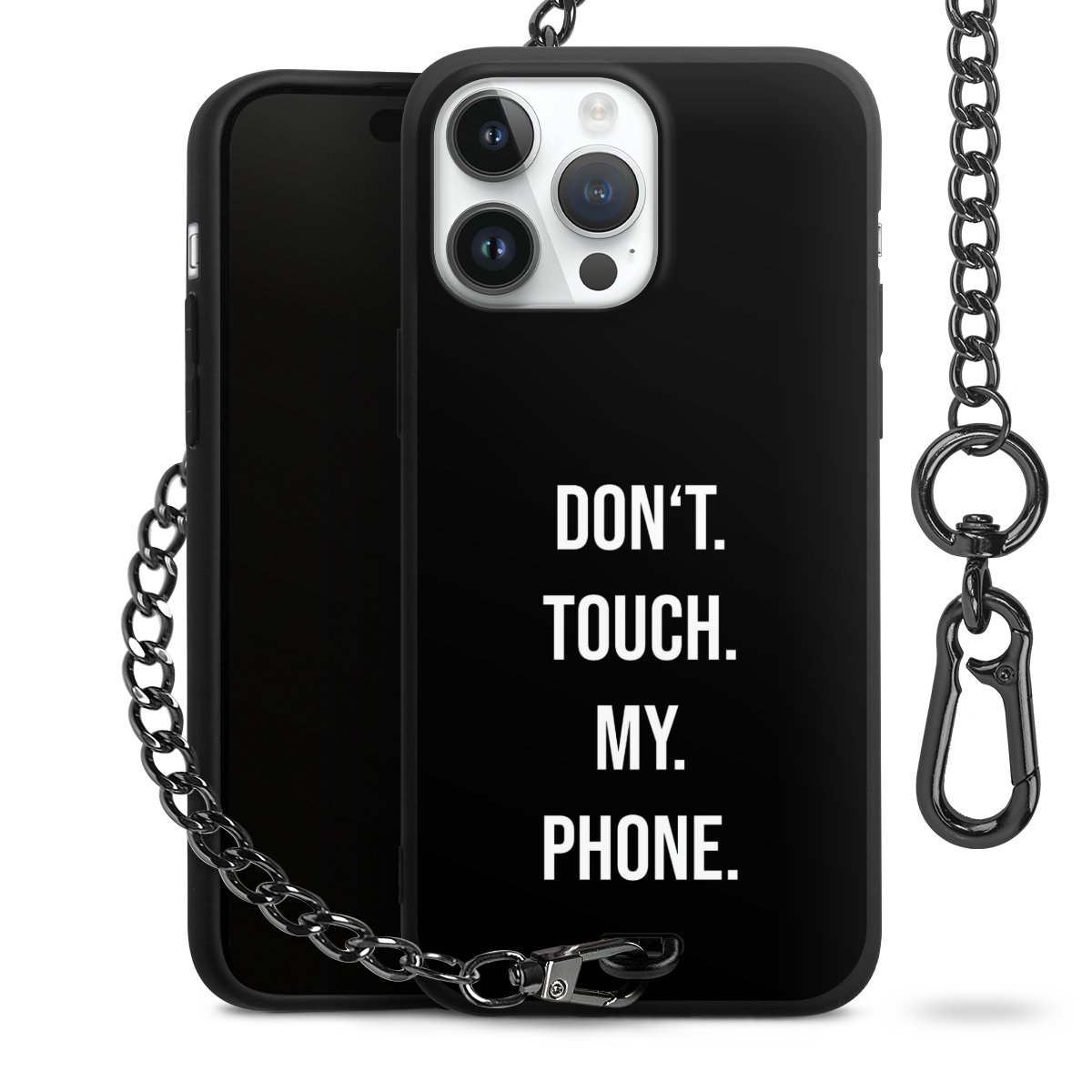 Die mattschwarze Silikon-Handyhülle besteht aus robustem TPU (thermoplastisches Polyurethan). Sie ist flexibel und schützt Dein Smartphone vor Stößen und Kratzern. Die Kette sowie der Karabinerhaken sind aus Metall in Gunmetal-Optik gefertigt. Für dieses Produkt kommen ausschließlich TÜV-geprüfte Materialien zum Einsatz.