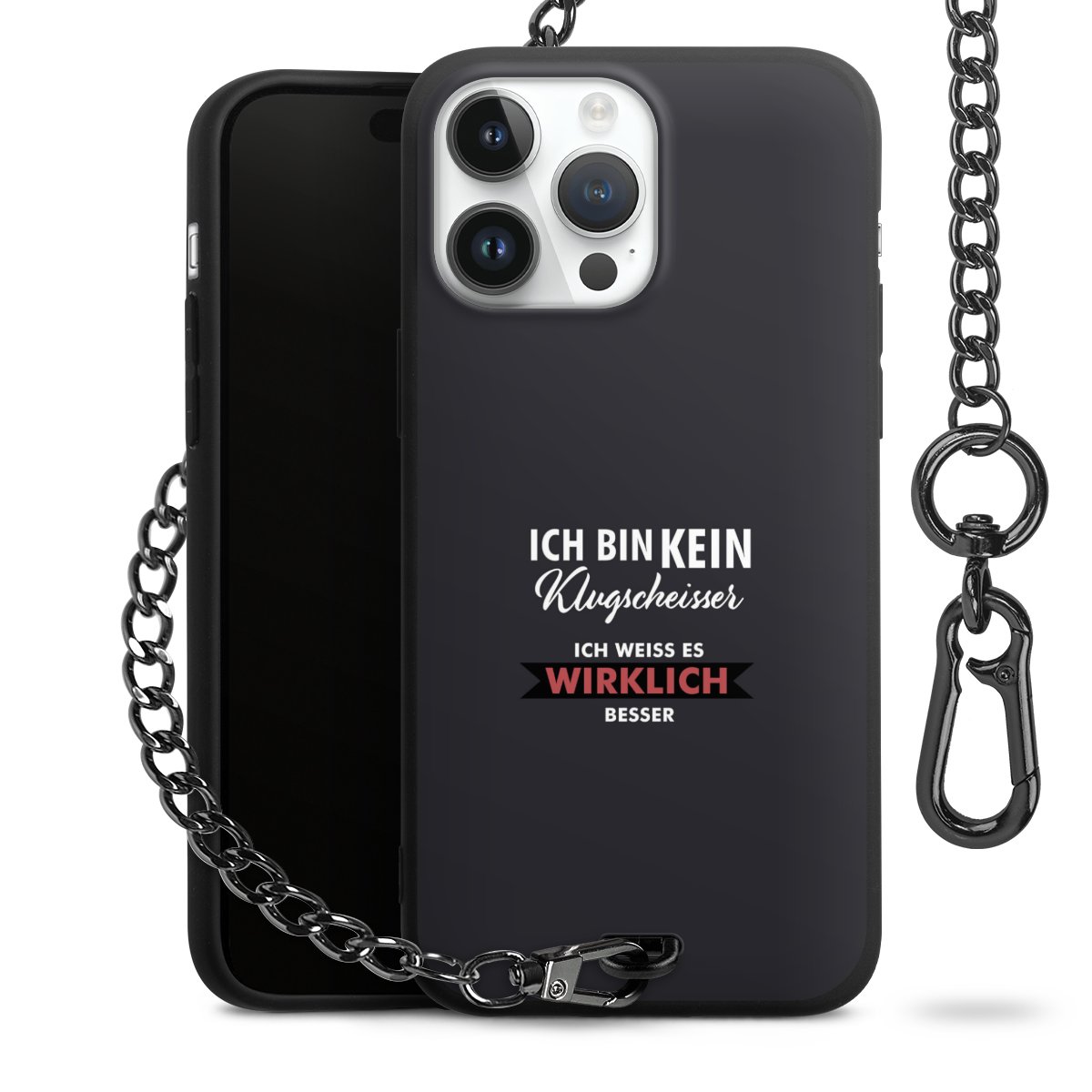 - Mattschwarze Handyhülle mit Metallkette