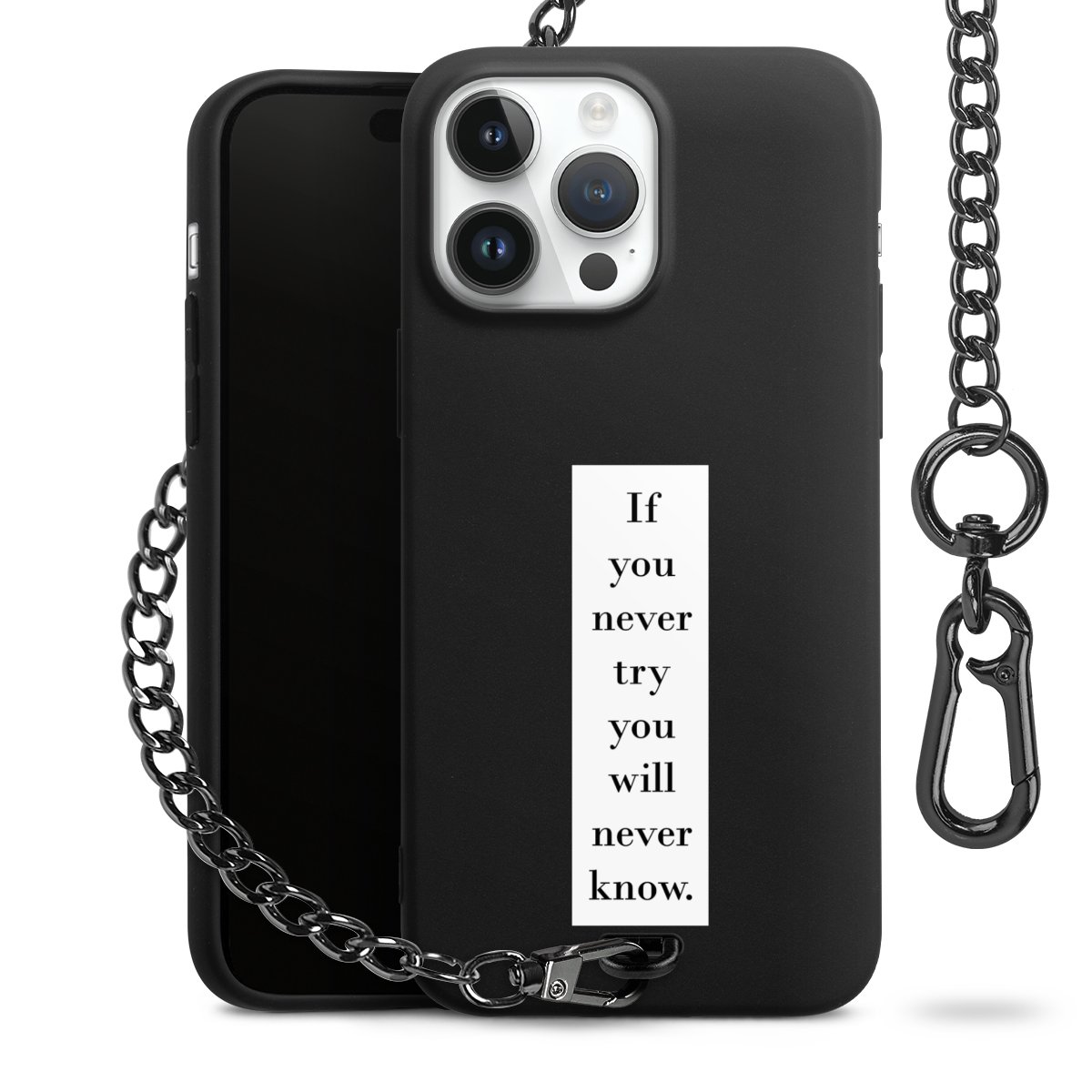 - Mattschwarze Handyhülle mit Metallkette