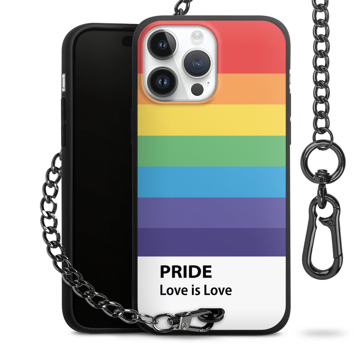 • Mattschwarze Handyhülle mit Metallkette