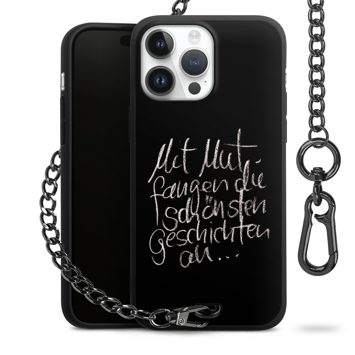 • Mattschwarze Handyhülle mit Metallkette