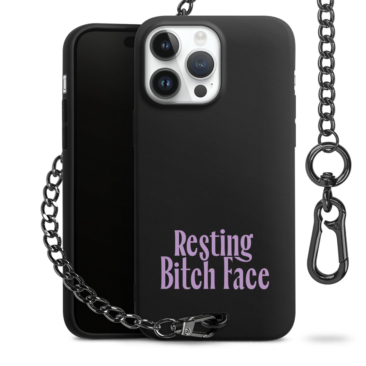 Die mattschwarze Silikon-Handyhülle besteht aus robustem TPU (thermoplastisches Polyurethan). Sie ist flexibel und schützt Dein Smartphone vor Stößen und Kratzern. Die Kette sowie der Karabinerhaken sind aus Metall in Gunmetal-Optik gefertigt. Für dieses Produkt kommen ausschließlich TÜV-geprüfte Materialien zum Einsatz.