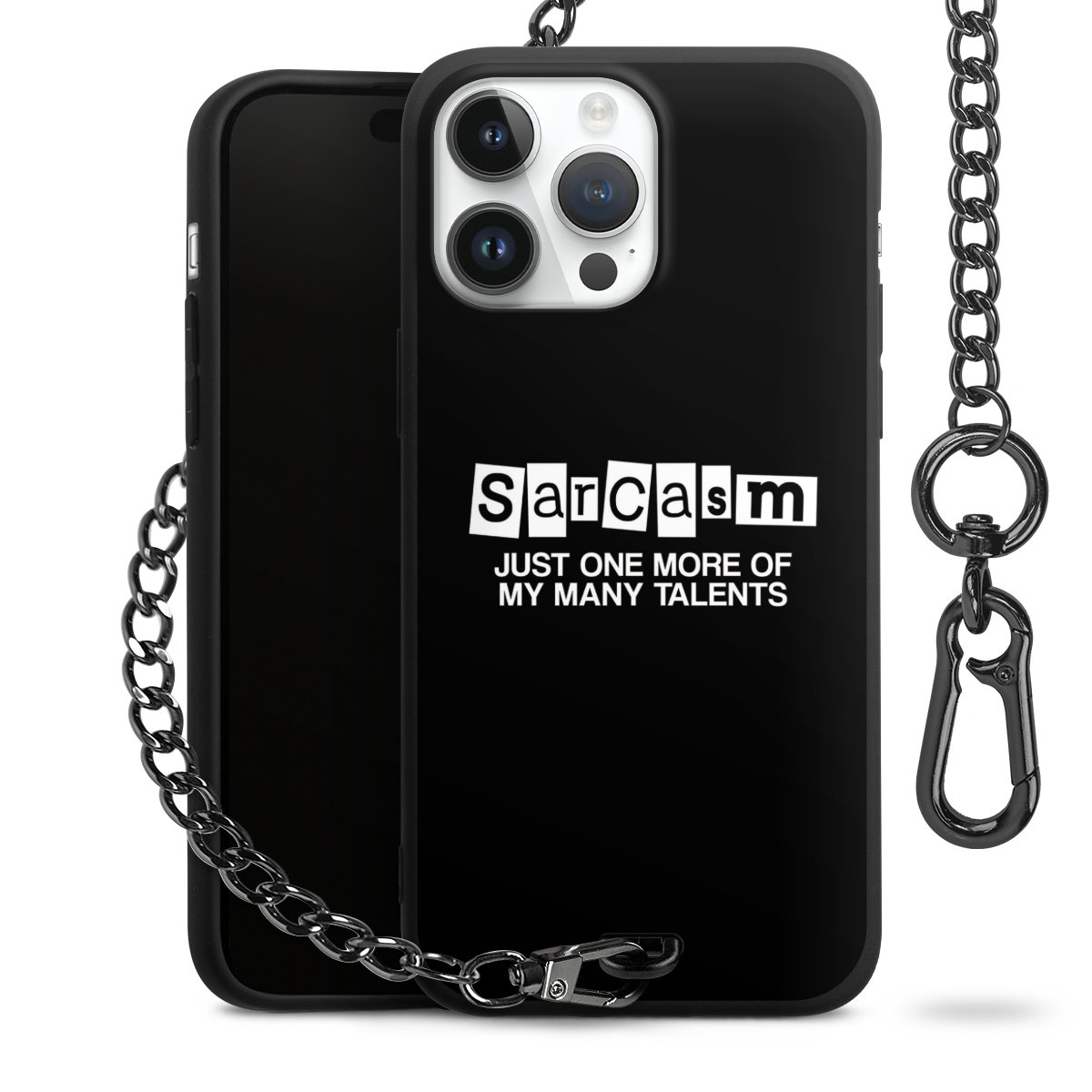 • Mattschwarze Handyhülle mit Metallkette