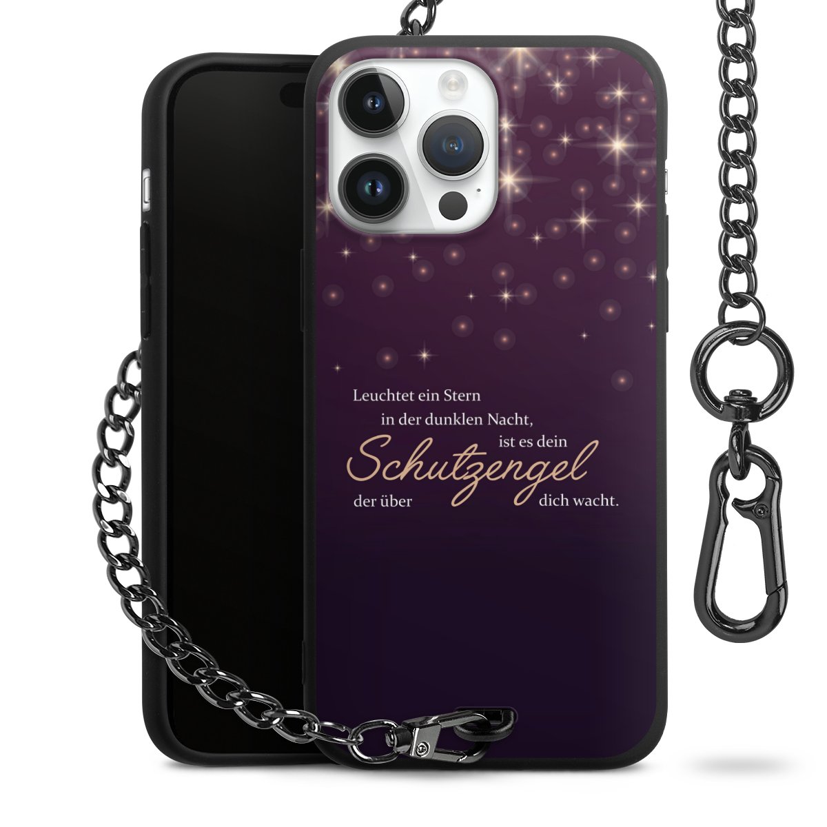 - Mattschwarze Handyhülle mit Metallkette