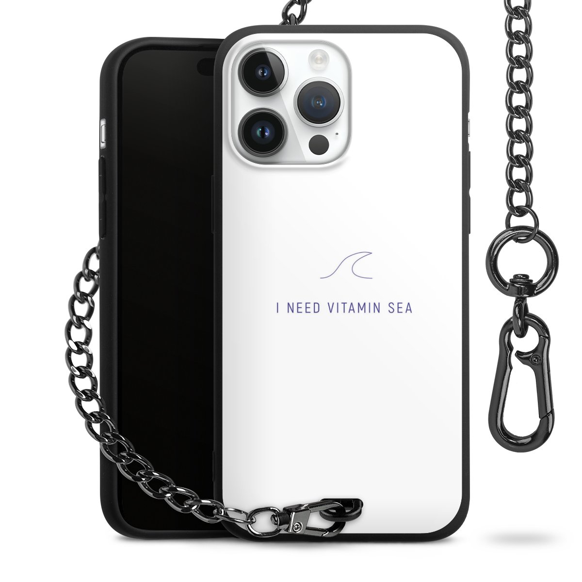 - Mattschwarze Handyhülle mit Metallkette