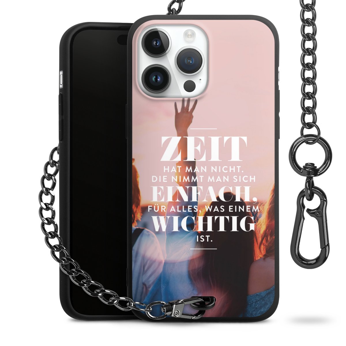 Die mattschwarze Silikon-Handyhülle besteht aus robustem TPU (thermoplastisches Polyurethan). Sie ist flexibel und schützt Dein Smartphone vor Stößen und Kratzern. Die Kette sowie der Karabinerhaken sind aus Metall in Gunmetal-Optik gefertigt. Für dieses Produkt kommen ausschließlich TÜV-geprüfte Materialien zum Einsatz.