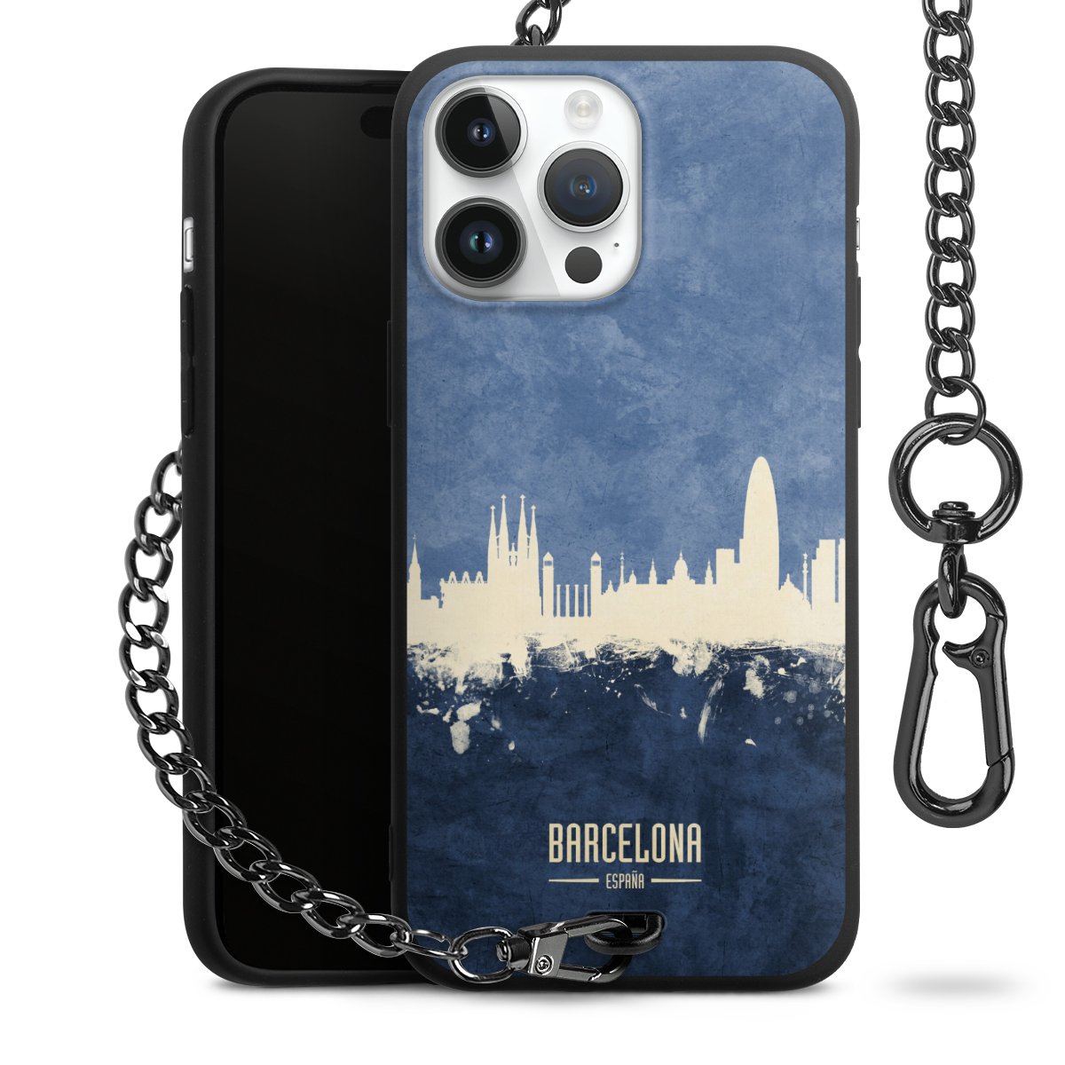• Mattschwarze Handyhülle mit Metallkette