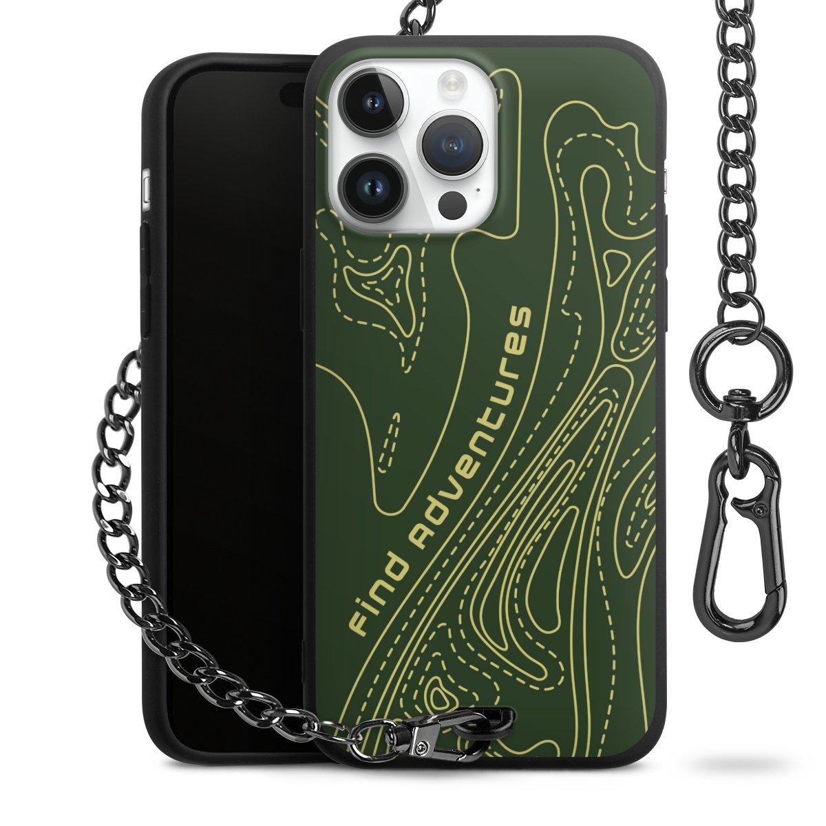 Die mattschwarze Silikon-Handyhülle besteht aus robustem TPU (thermoplastisches Polyurethan). Sie ist flexibel und schützt Dein Smartphone vor Stößen und Kratzern. Die Kette sowie der Karabinerhaken sind aus Metall in Gunmetal-Optik gefertigt. Für dieses Produkt kommen ausschließlich TÜV-geprüfte Materialien zum Einsatz.