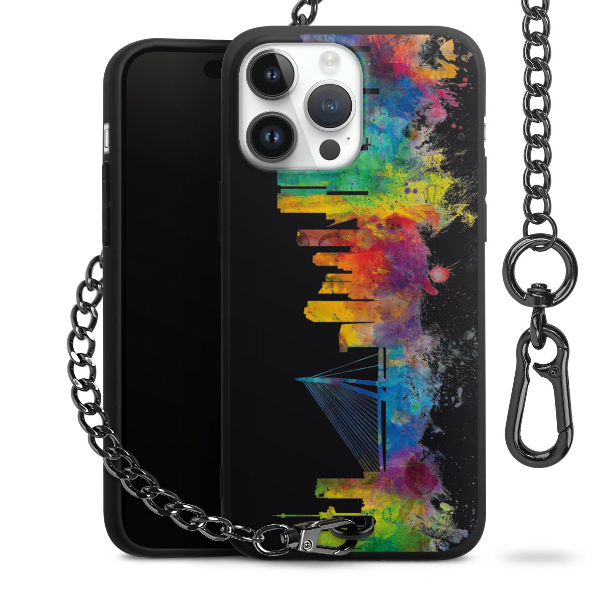 Die mattschwarze Silikon-Handyhülle besteht aus robustem TPU (thermoplastisches Polyurethan). Sie ist flexibel und schützt Dein Smartphone vor Stößen und Kratzern. Die Kette sowie der Karabinerhaken sind aus Metall in Gunmetal-Optik gefertigt. Für dieses Produkt kommen ausschließlich TÜV-geprüfte Materialien zum Einsatz.