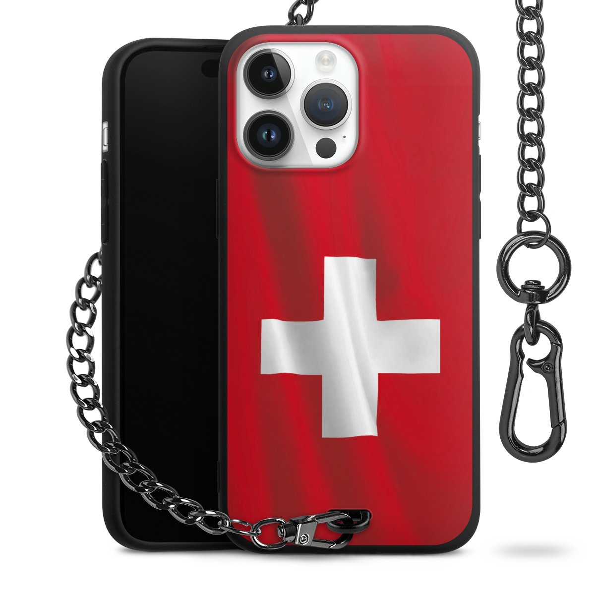 Die mattschwarze Silikon-Handyhülle besteht aus robustem TPU (thermoplastisches Polyurethan). Sie ist flexibel und schützt Dein Smartphone vor Stößen und Kratzern. Die Kette sowie der Karabinerhaken sind aus Metall in Gunmetal-Optik gefertigt. Für dieses Produkt kommen ausschließlich TÜV-geprüfte Materialien zum Einsatz.