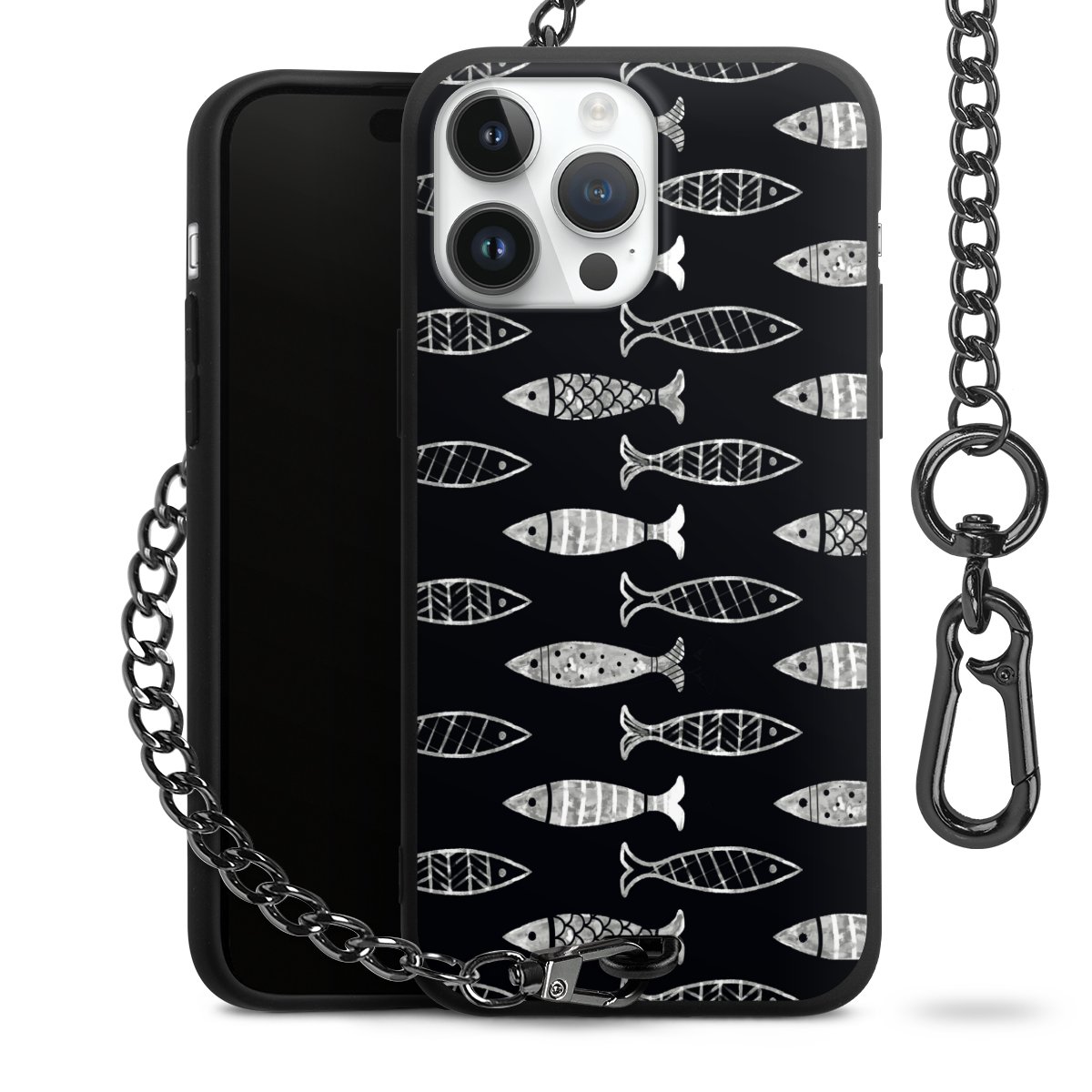 • Mattschwarze Handyhülle mit Metallkette