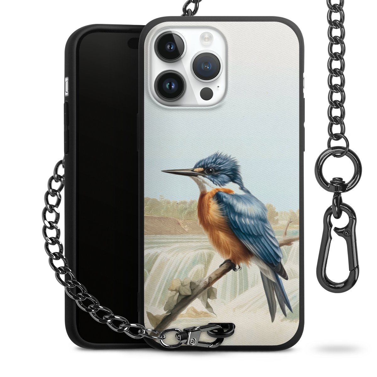 • Mattschwarze Handyhülle mit Metallkette
