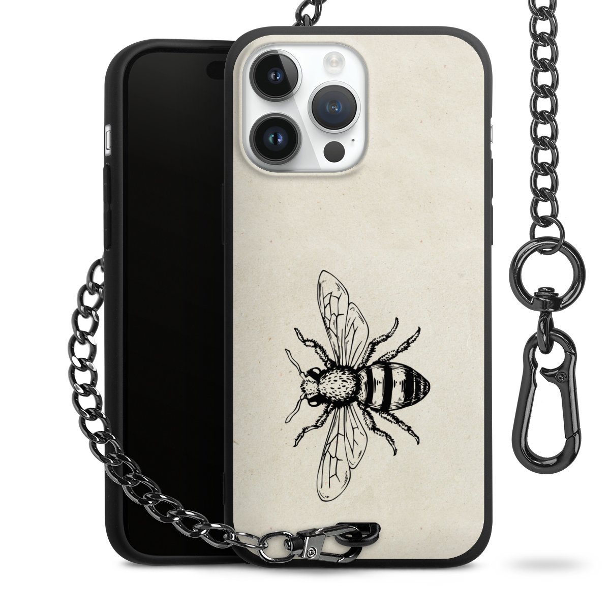 • Mattschwarze Handyhülle mit Metallkette
