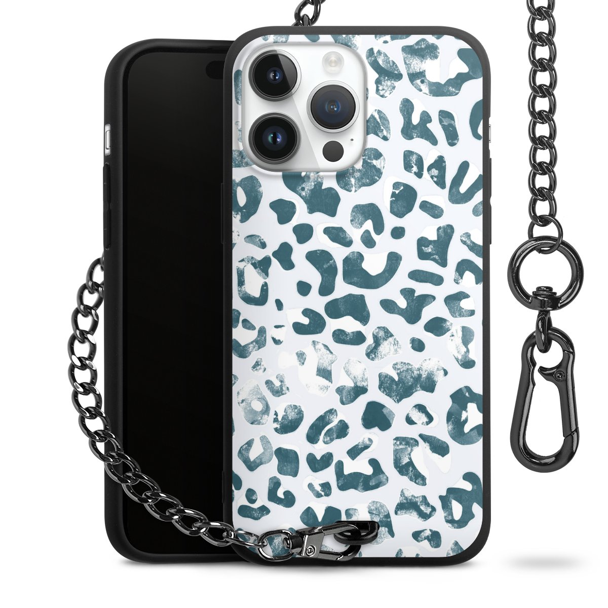 • Mattschwarze Handyhülle mit Metallkette