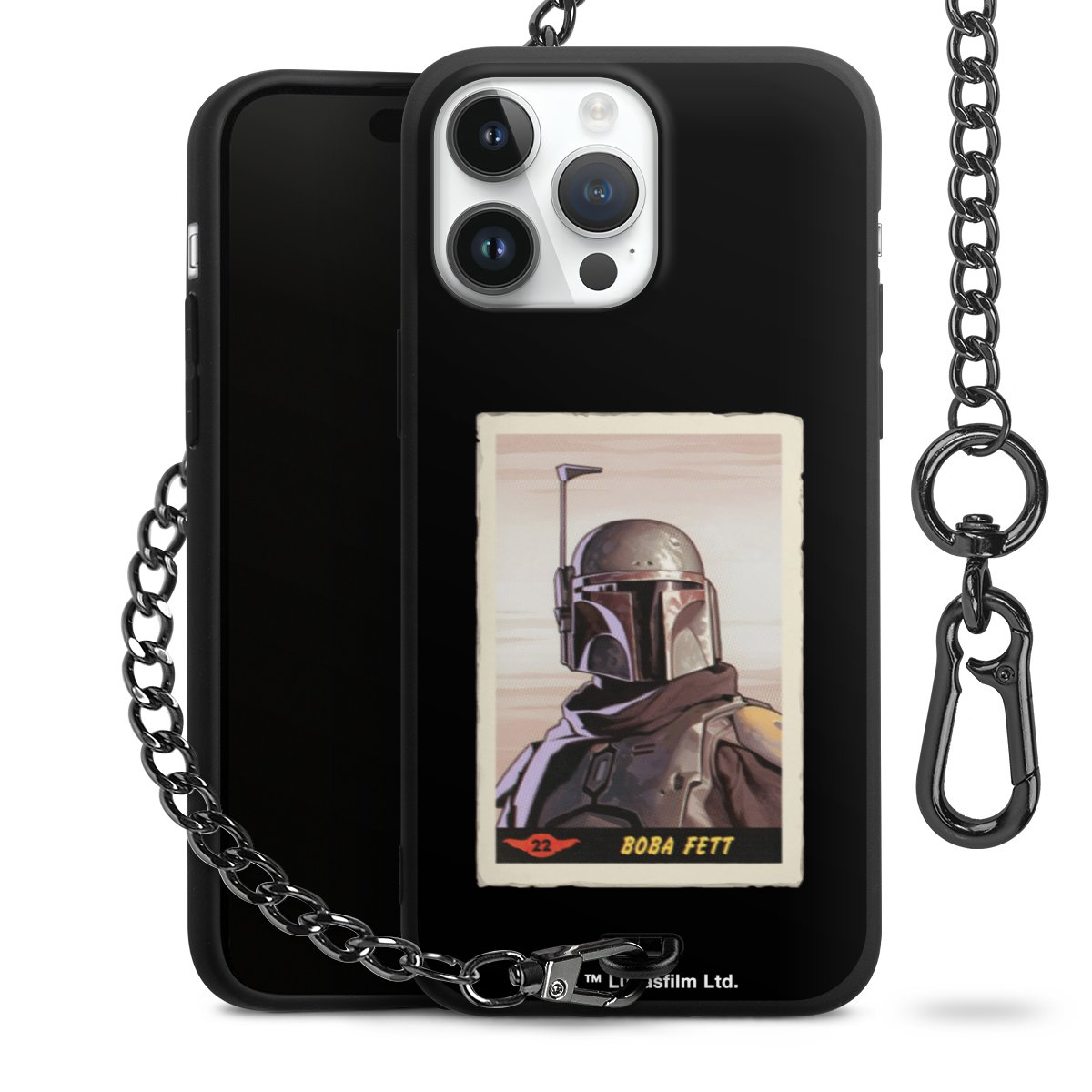• Mattschwarze Handyhülle mit Metallkette