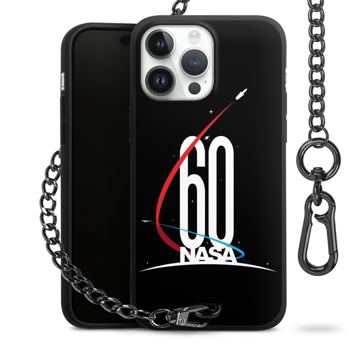 - Mattschwarze Handyhülle mit Metallkette