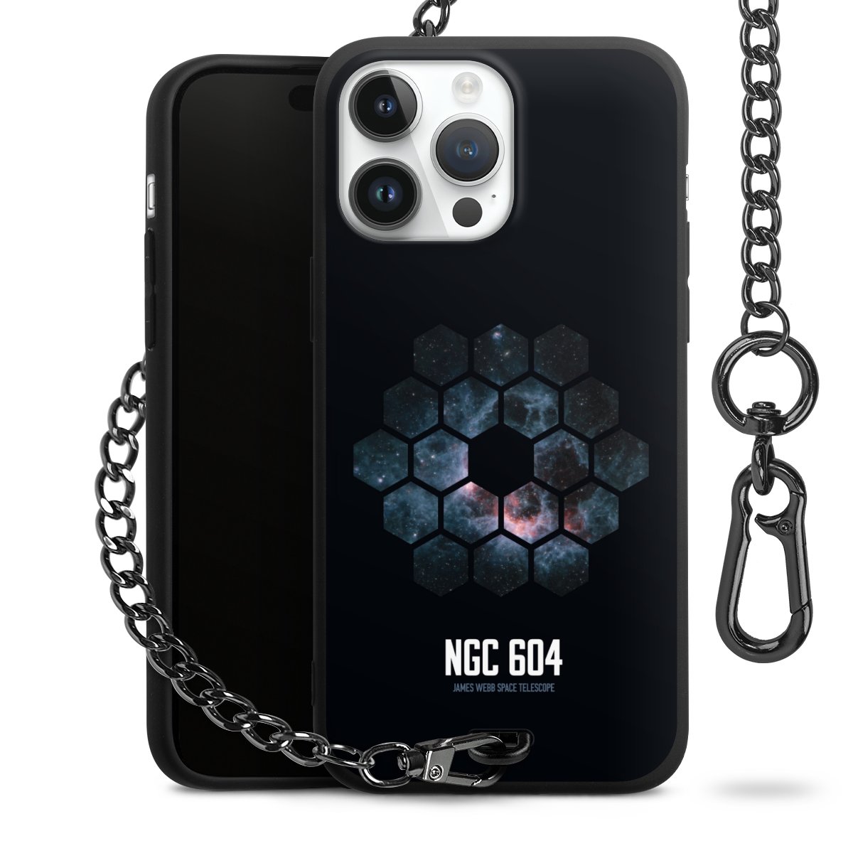 - Mattschwarze Handyhülle mit Metallkette
