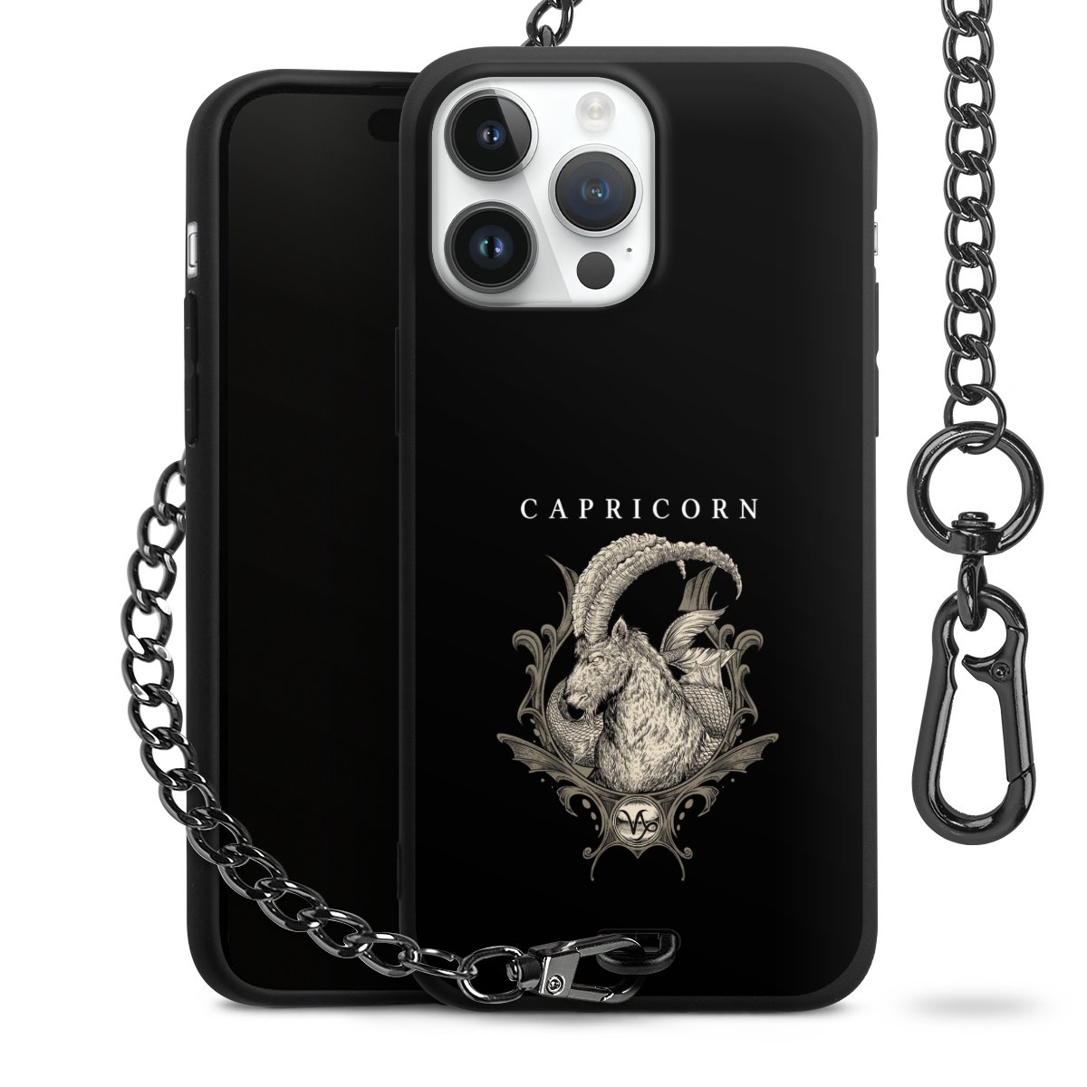 • Mattschwarze Handyhülle mit Metallkette