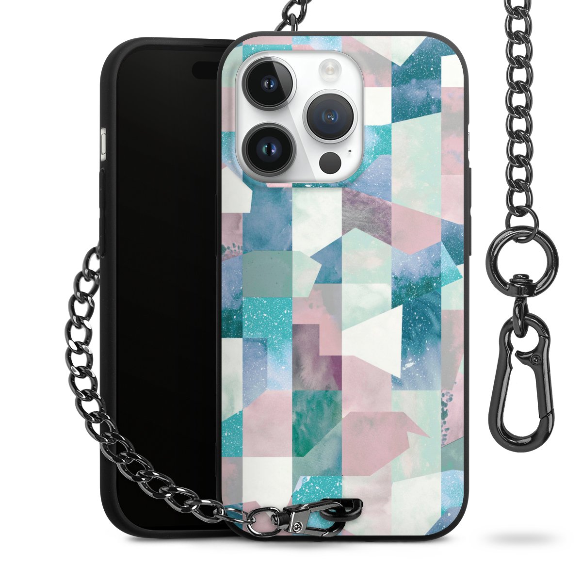 • Mattschwarze Handyhülle mit Metallkette
