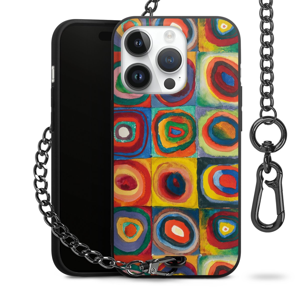 • Mattschwarze Handyhülle mit Metallkette