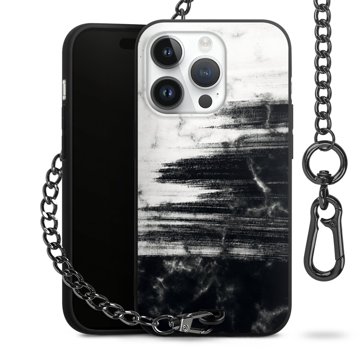 • Mattschwarze Handyhülle mit Metallkette