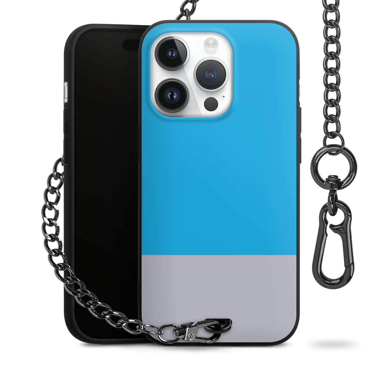 - Mattschwarze Handyhülle mit Metallkette