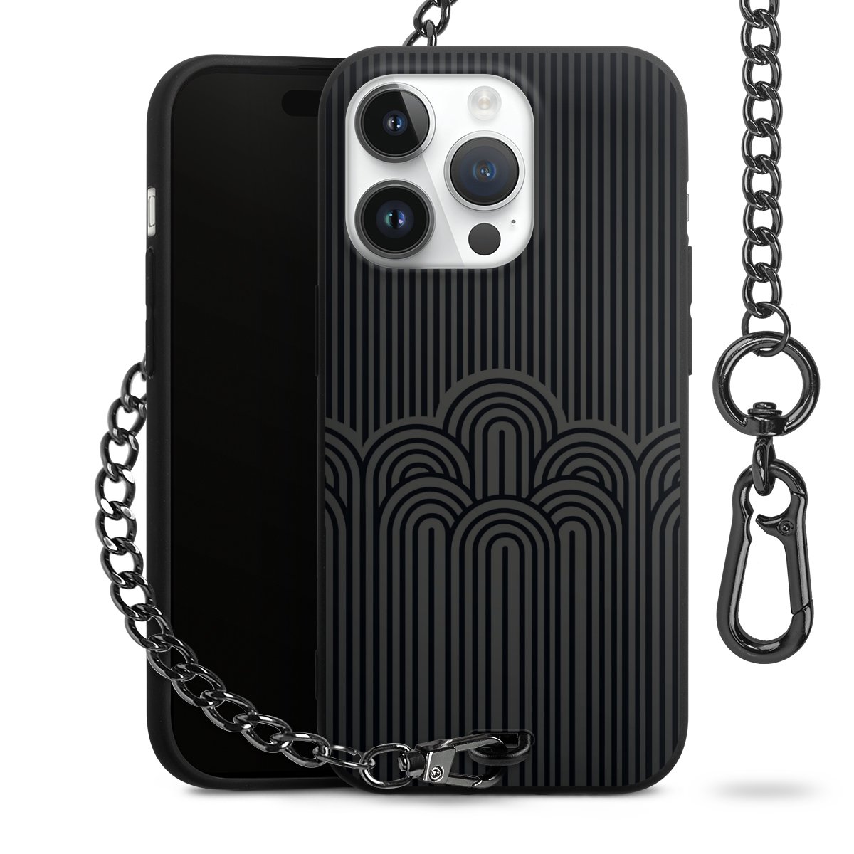 • Mattschwarze Handyhülle mit Metallkette