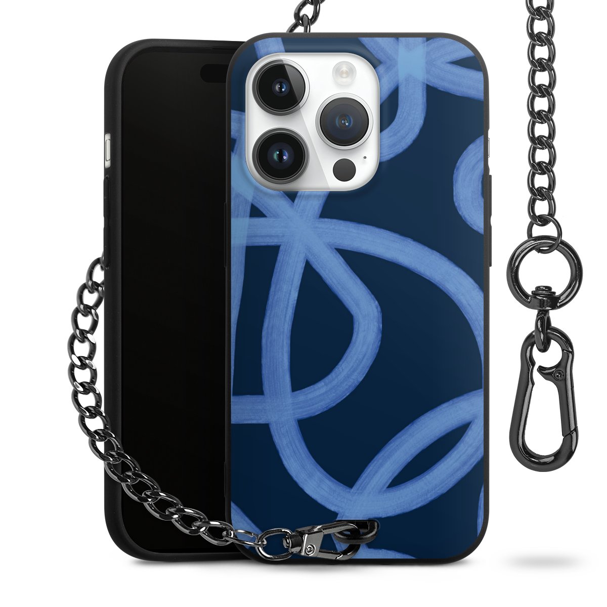 • Mattschwarze Handyhülle mit Metallkette