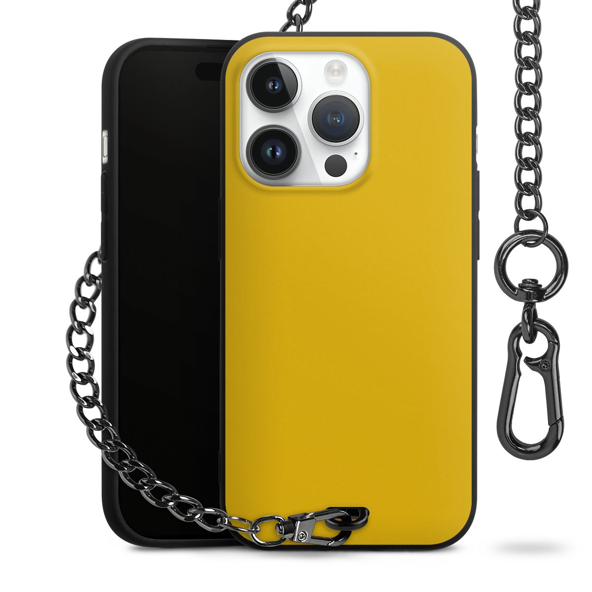 • Mattschwarze Handyhülle mit Metallkette