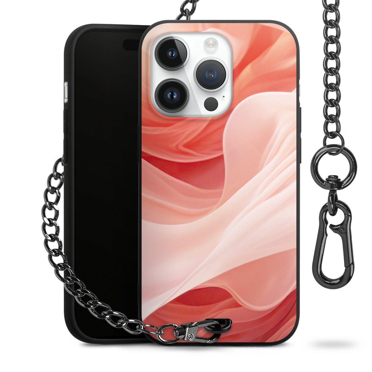 • Mattschwarze Handyhülle mit Metallkette