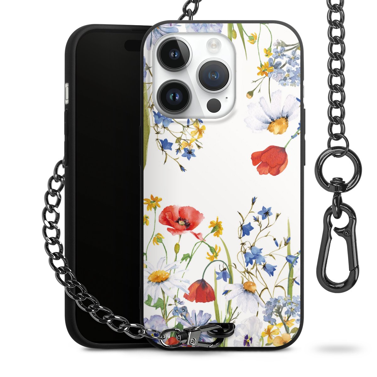 • Mattschwarze Handyhülle mit Metallkette