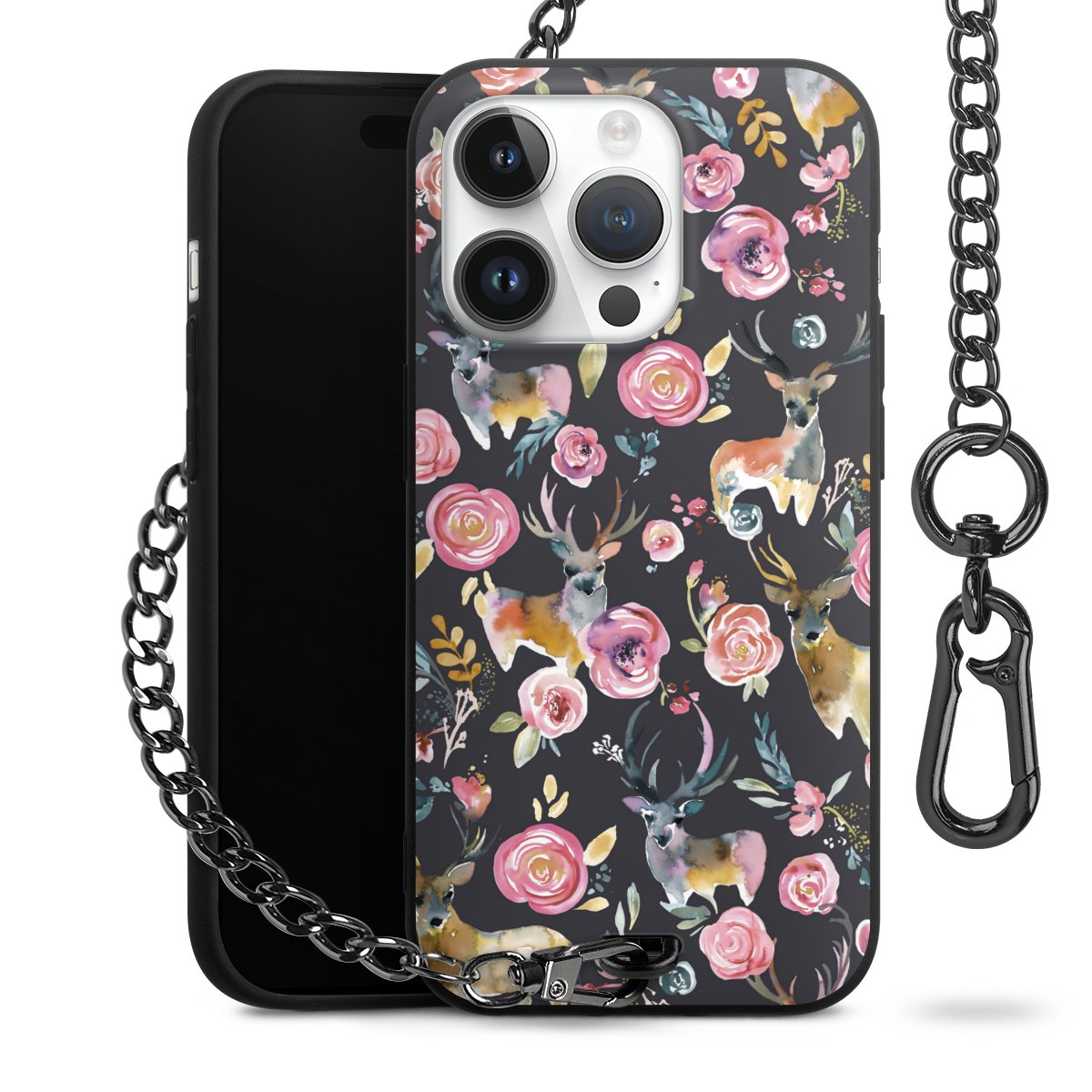 • Mattschwarze Handyhülle mit Metallkette
