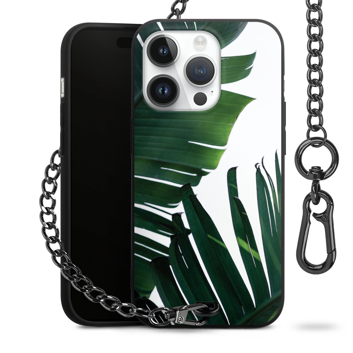 • Mattschwarze Handyhülle mit Metallkette