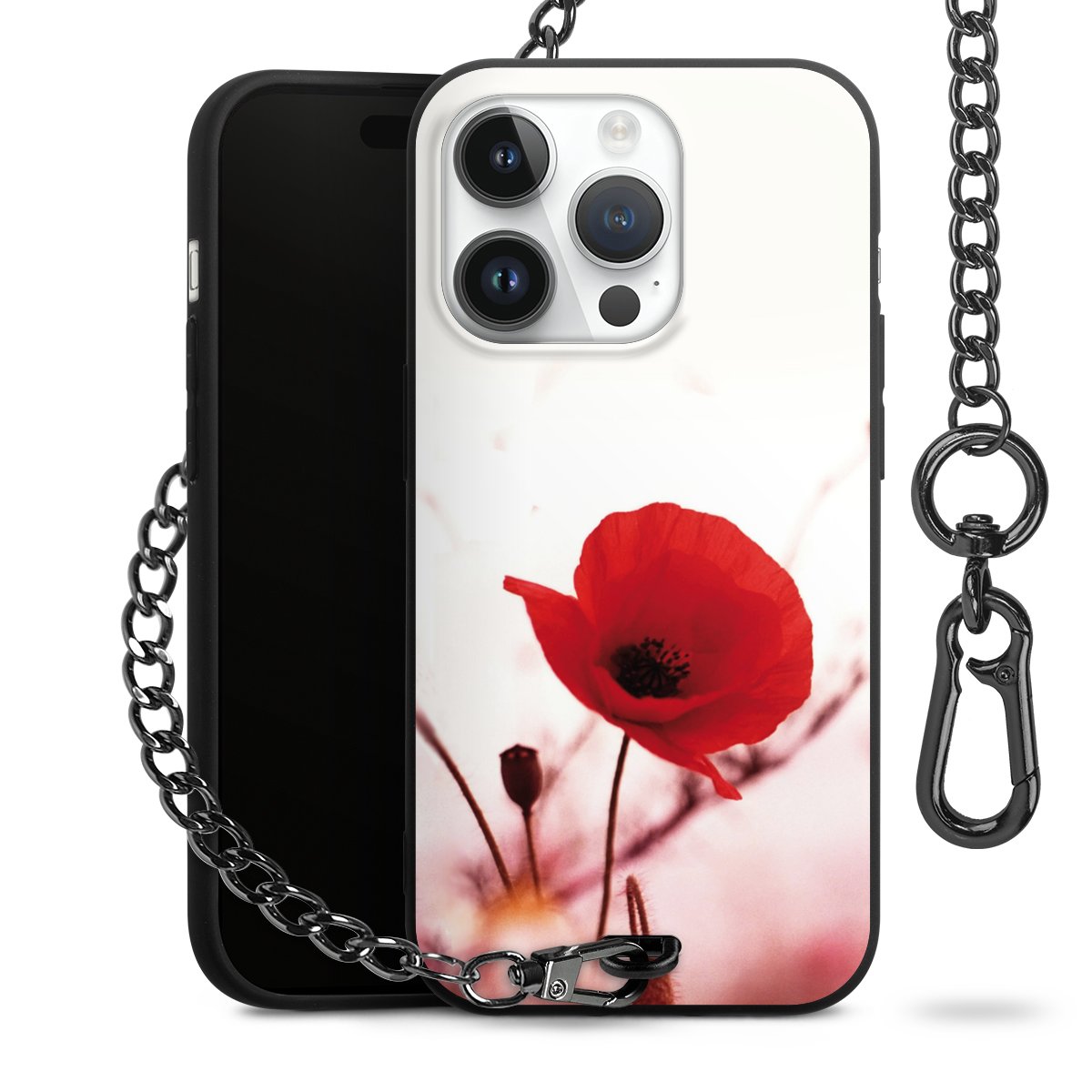 - Mattschwarze Handyhülle mit Metallkette