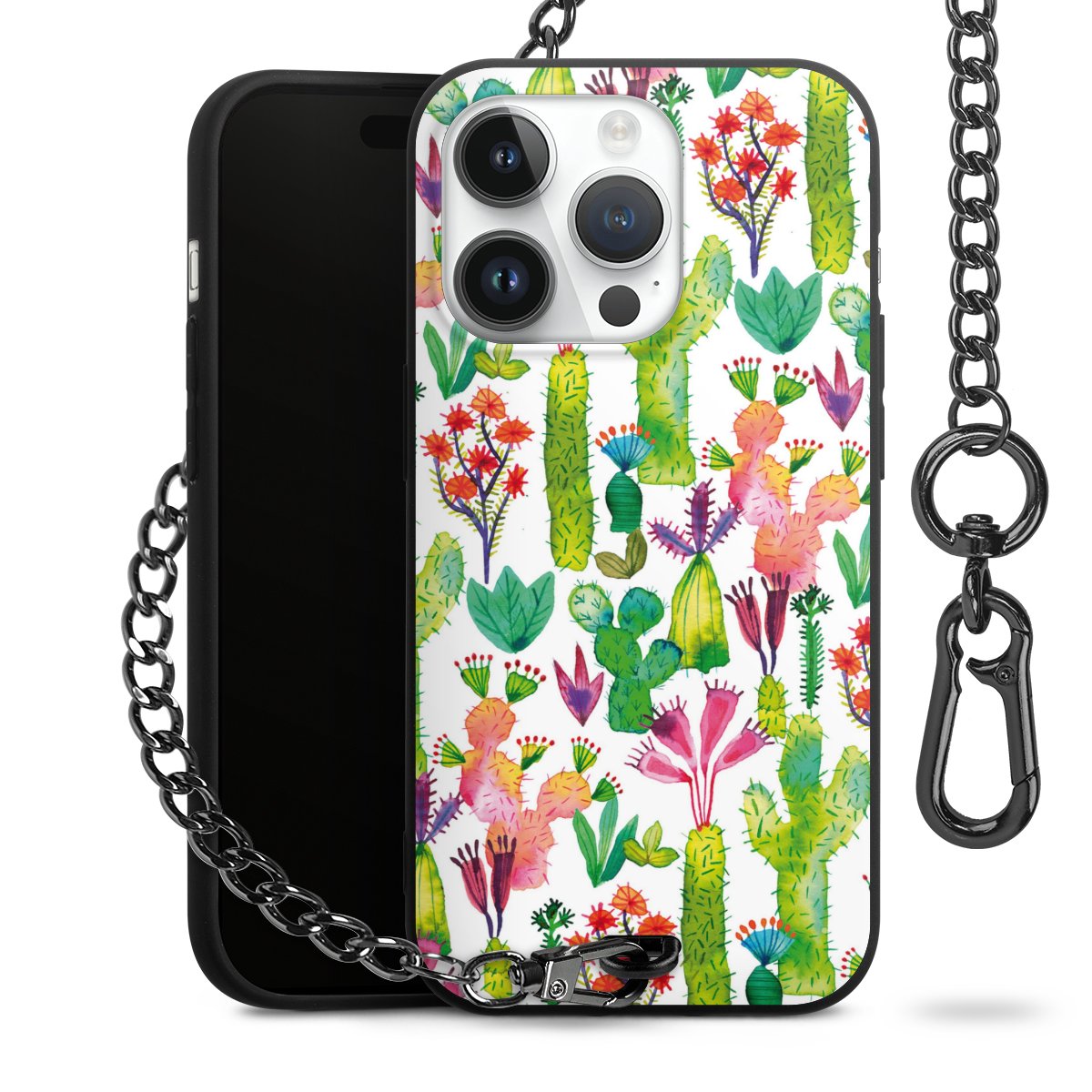 • Mattschwarze Handyhülle mit Metallkette