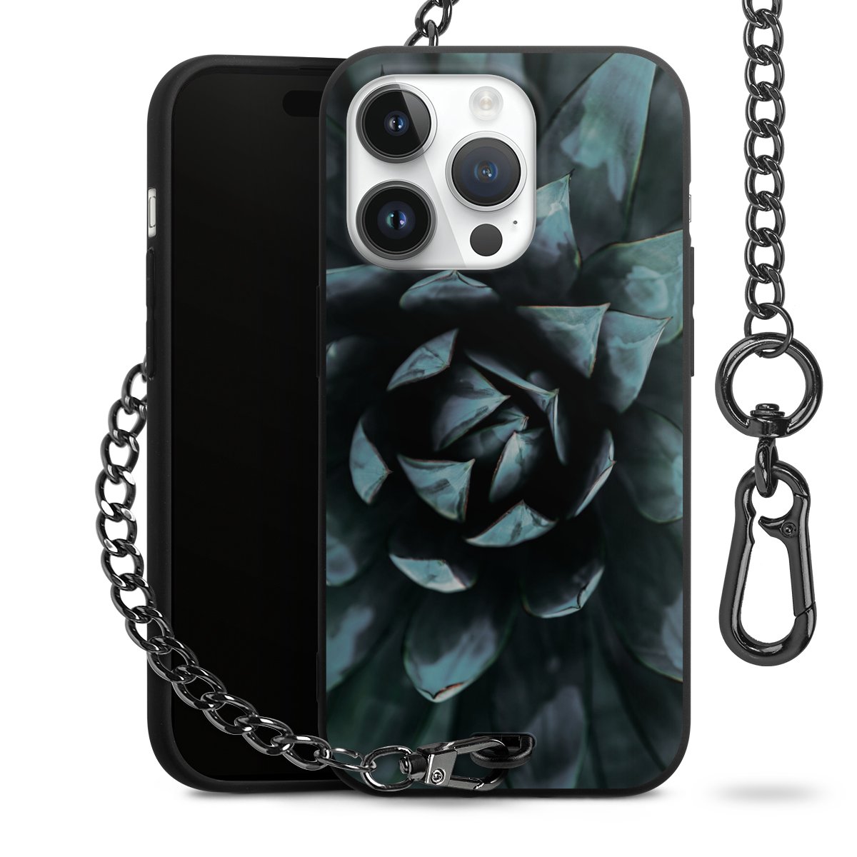 - Mattschwarze Handyhülle mit Metallkette