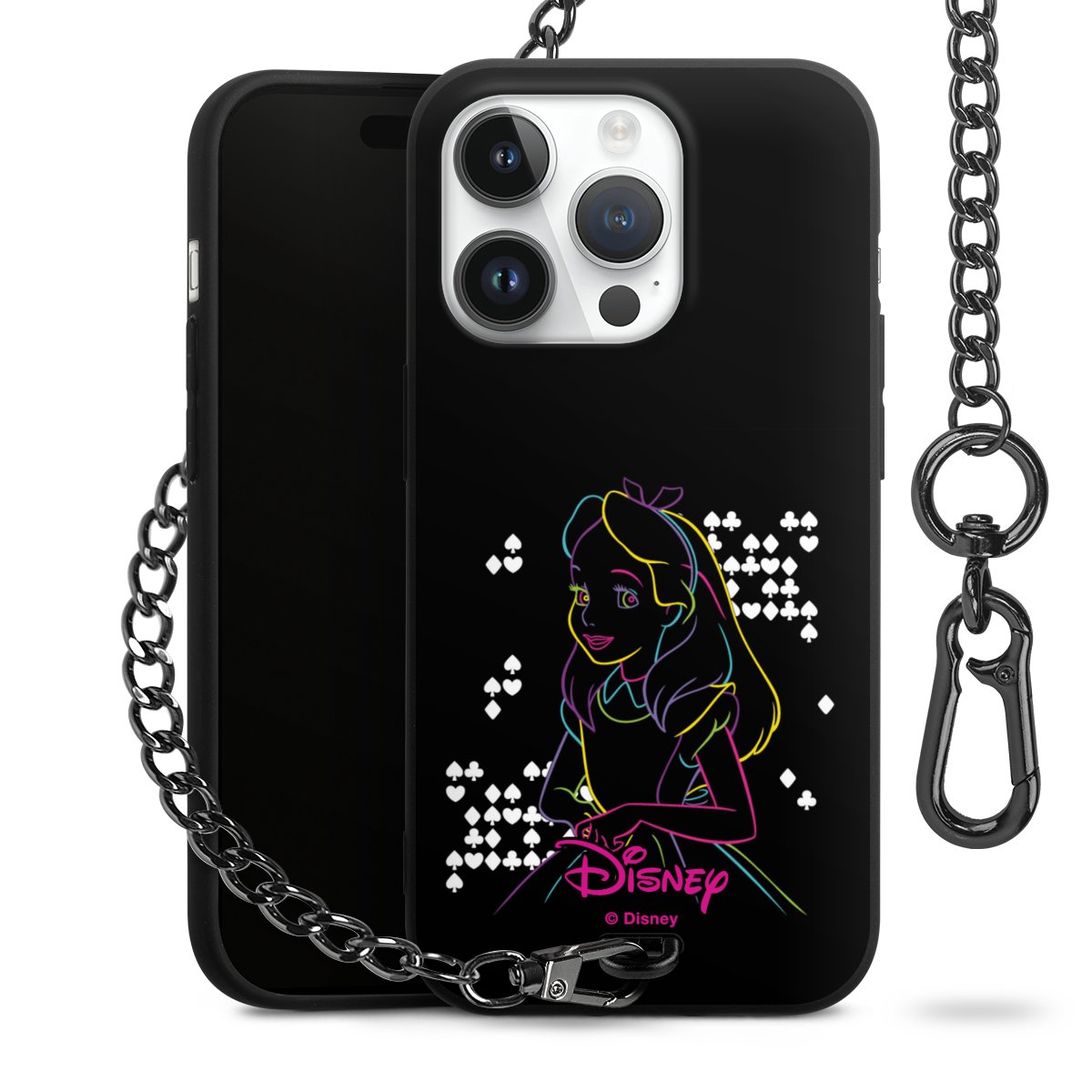 Die mattschwarze Silikon-Handyhülle besteht aus robustem TPU (thermoplastisches Polyurethan). Sie ist flexibel und schützt Dein Smartphone vor Stößen und Kratzern. Die Kette sowie der Karabinerhaken sind aus Metall in Gunmetal-Optik gefertigt. Für dieses Produkt kommen ausschließlich TÜV-geprüfte Materialien zum Einsatz.