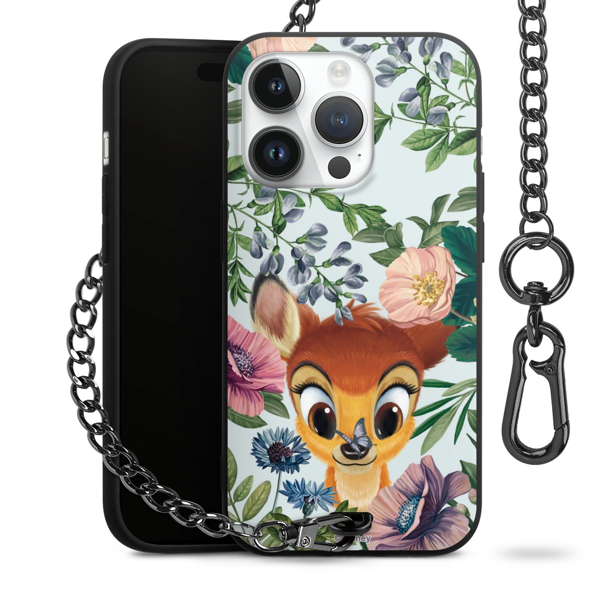 Die Handyhülle verfügt über eine mittig am unteren Rand platzierte Öse, an der die Metallkette stabil befestigt ist. Bestelle die Hülle einfach für Dein Smartphone-Modell, dann passt sie wie angegossen und Du brauchst sie bloß einmal anzudrücken. Handy in die Tasche, Karabiner an den Hosenbund – schon kann die Party starten.