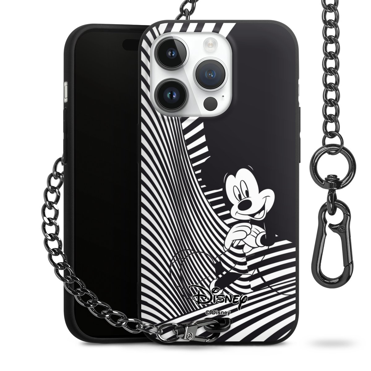 • Mattschwarze Handyhülle mit Metallkette