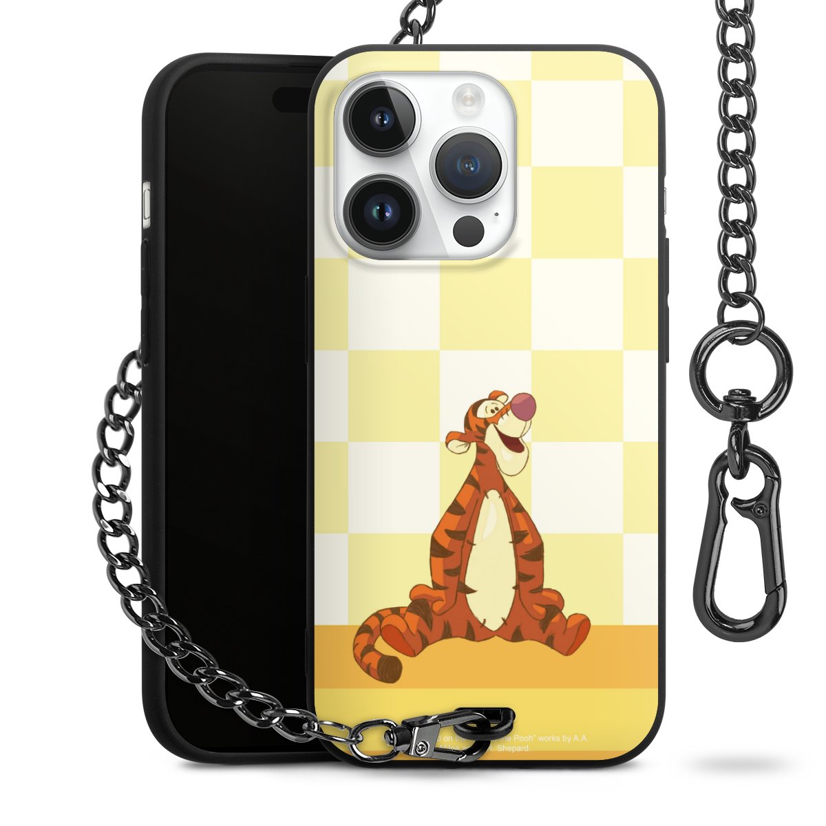 Die mattschwarze Silikon-Handyhülle besteht aus robustem TPU (thermoplastisches Polyurethan). Sie ist flexibel und schützt Dein Smartphone vor Stößen und Kratzern. Die Kette sowie der Karabinerhaken sind aus Metall in Gunmetal-Optik gefertigt. Für dieses Produkt kommen ausschließlich TÜV-geprüfte Materialien zum Einsatz.