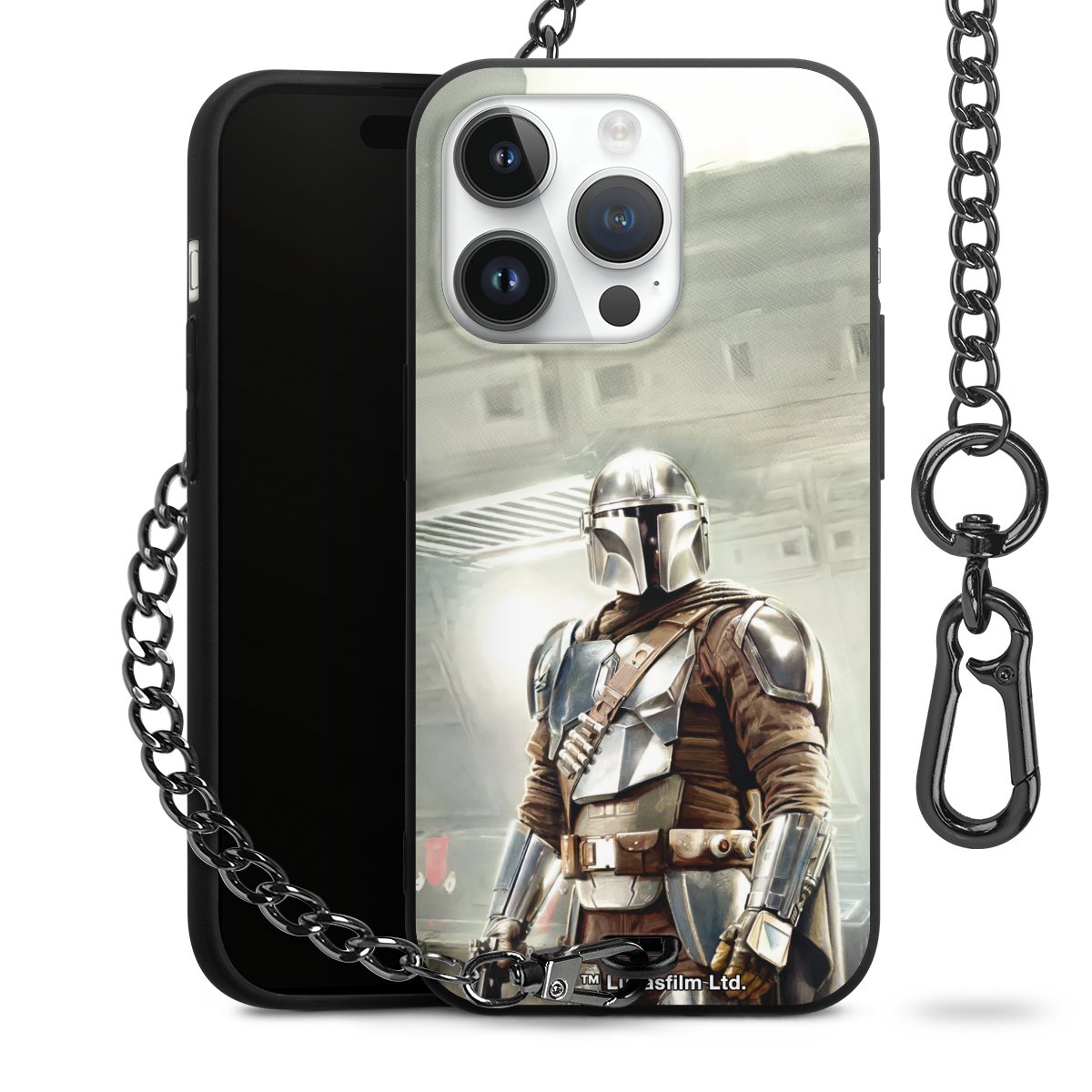 Die mattschwarze Silikon-Handyhülle besteht aus robustem TPU (thermoplastisches Polyurethan). Sie ist flexibel und schützt Dein Smartphone vor Stößen und Kratzern. Die Kette sowie der Karabinerhaken sind aus Metall in Gunmetal-Optik gefertigt. Für dieses Produkt kommen ausschließlich TÜV-geprüfte Materialien zum Einsatz.