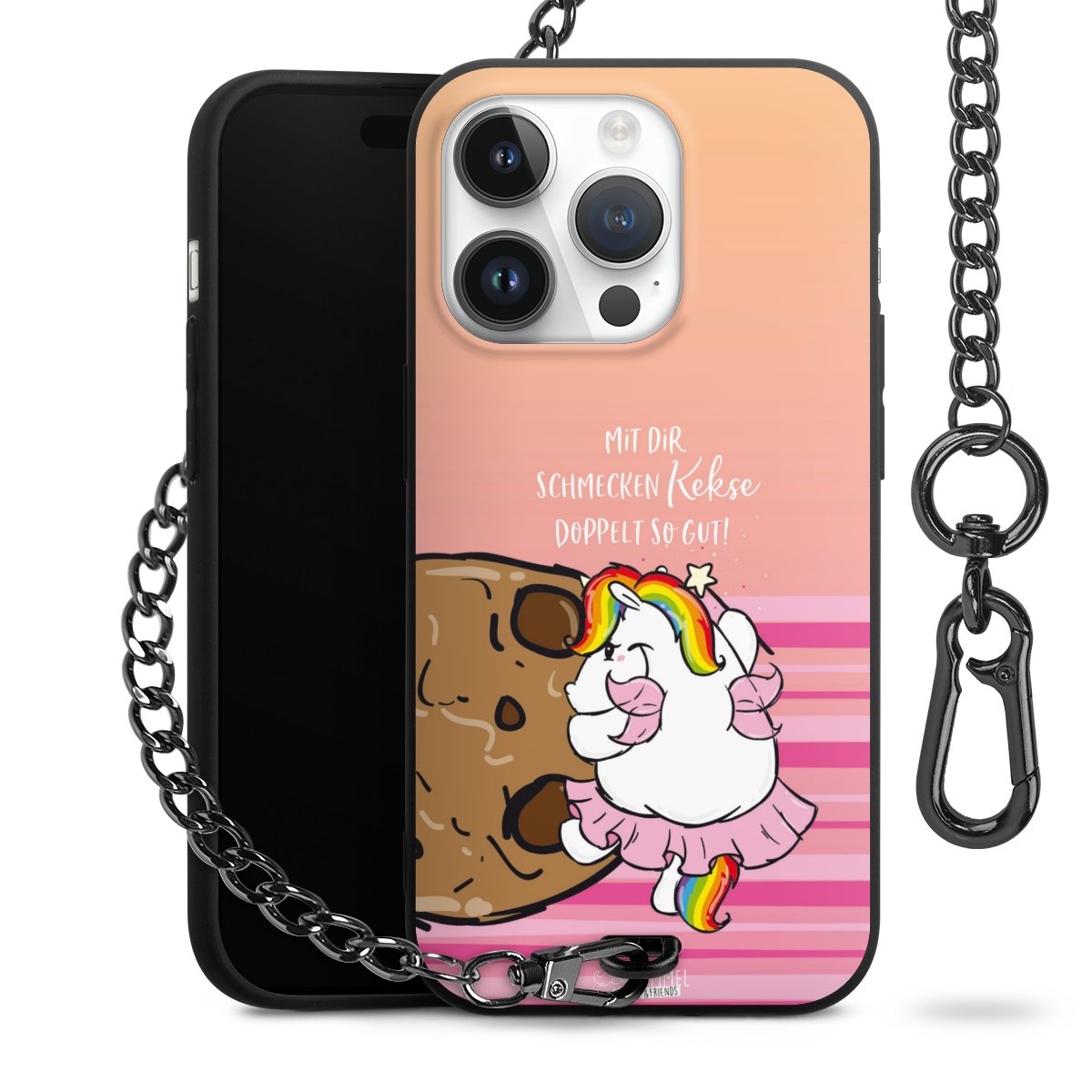 Die mattschwarze Silikon-Handyhülle besteht aus robustem TPU (thermoplastisches Polyurethan). Sie ist flexibel und schützt Dein Smartphone vor Stößen und Kratzern. Die Kette sowie der Karabinerhaken sind aus Metall in Gunmetal-Optik gefertigt. Für dieses Produkt kommen ausschließlich TÜV-geprüfte Materialien zum Einsatz.