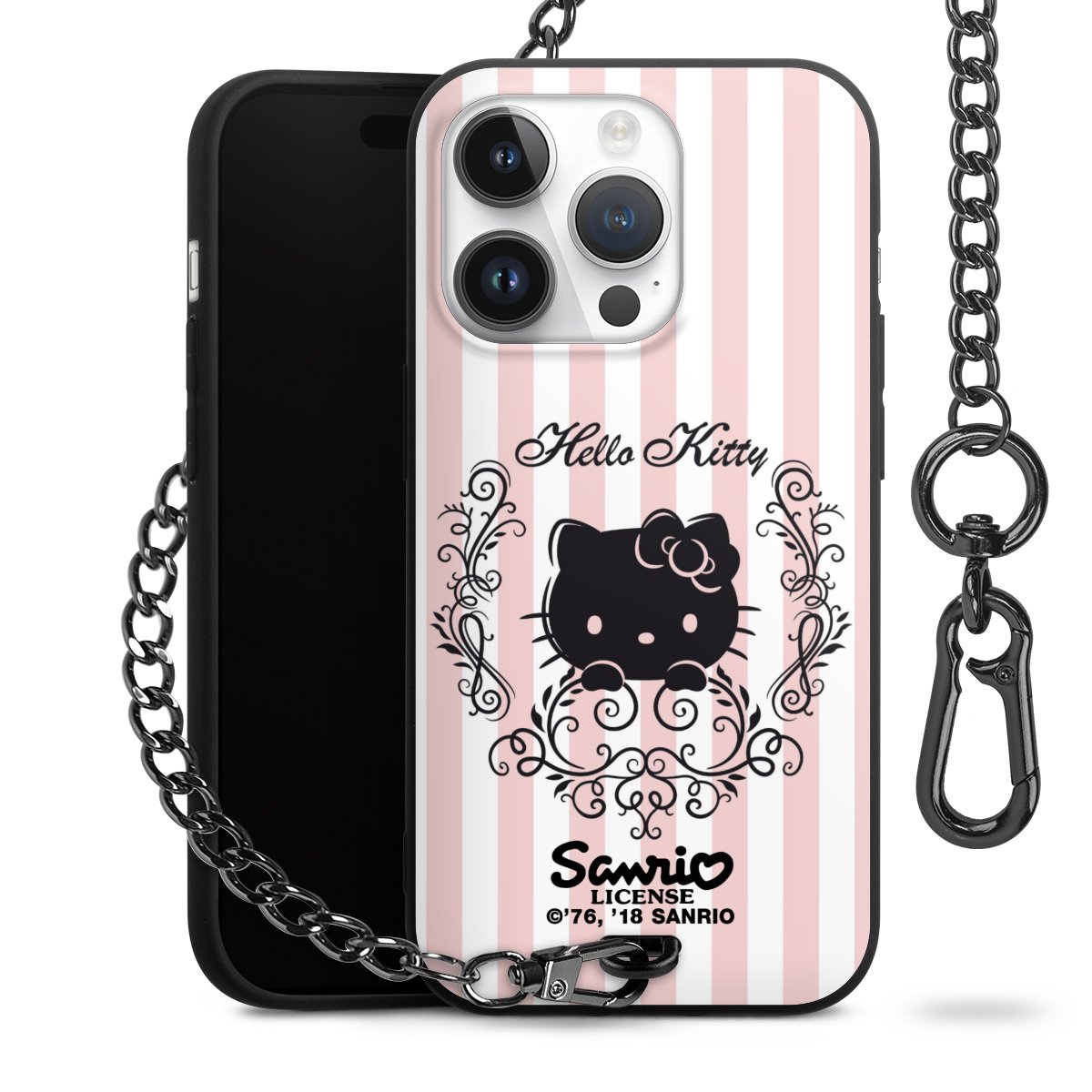 Die mattschwarze Silikon-Handyhülle besteht aus robustem TPU (thermoplastisches Polyurethan). Sie ist flexibel und schützt Dein Smartphone vor Stößen und Kratzern. Die Kette sowie der Karabinerhaken sind aus Metall in Gunmetal-Optik gefertigt. Für dieses Produkt kommen ausschließlich TÜV-geprüfte Materialien zum Einsatz.