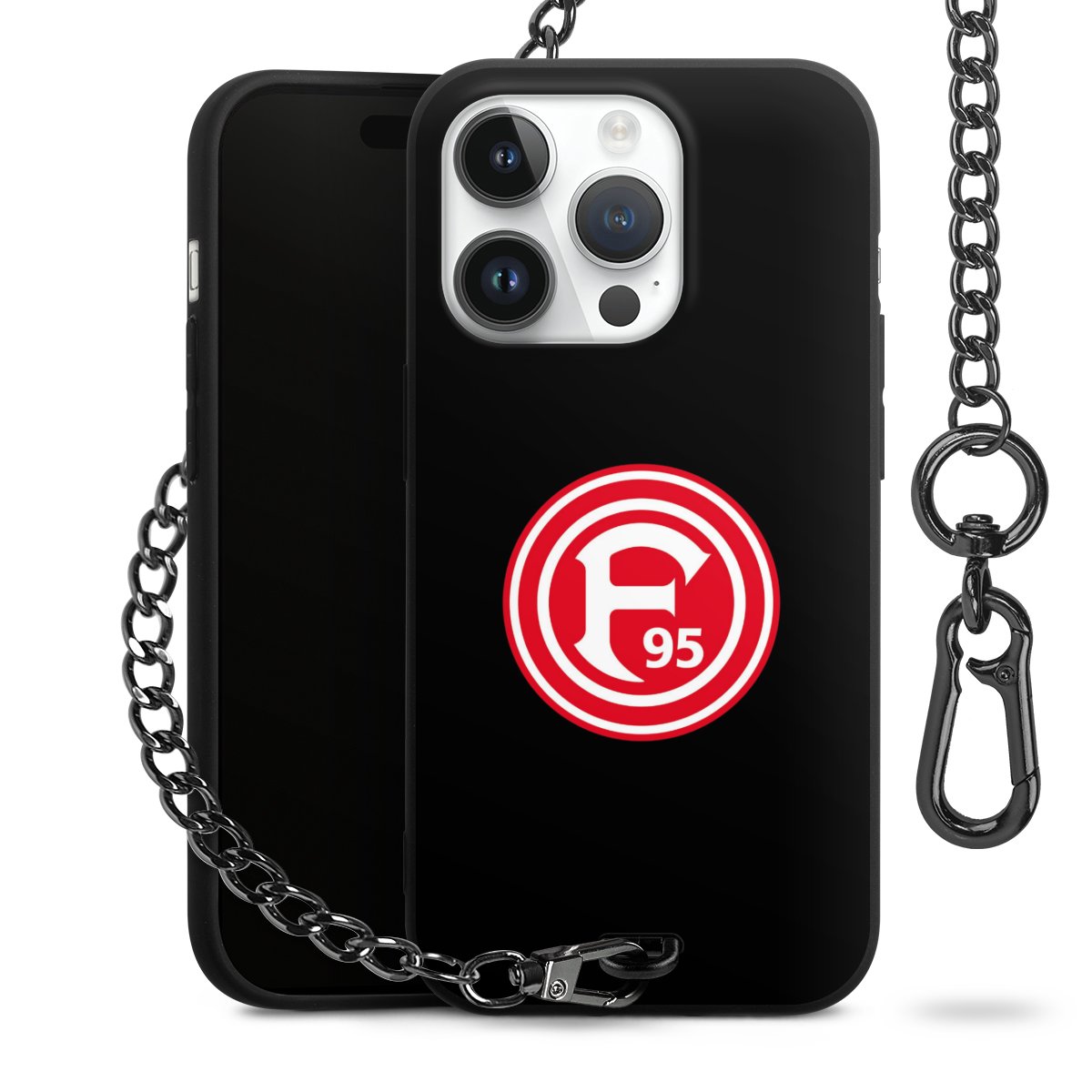 • Mattschwarze Handyhülle mit Metallkette