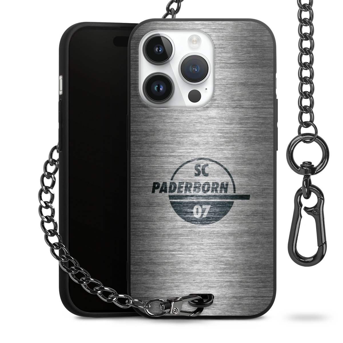 • Mattschwarze Handyhülle mit Metallkette